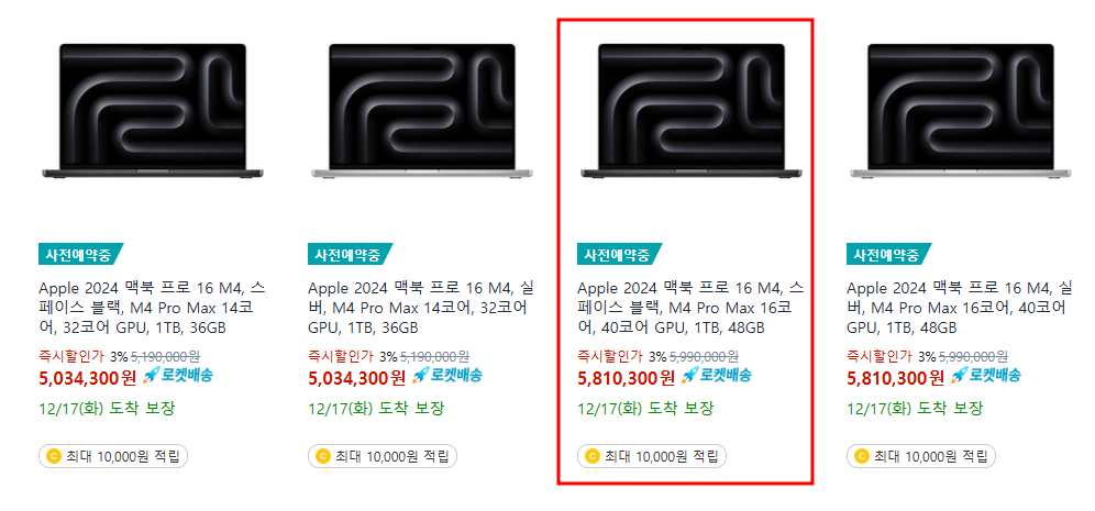 맥북프로 m4 max 16인치 쿠팡 사전예약 지름기